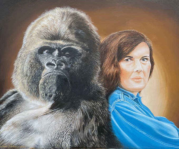 Dian Fossey. Hon ägnade sitt liv åt att studera bergsgorillorna i Rwanda. Hon mördades 1985.